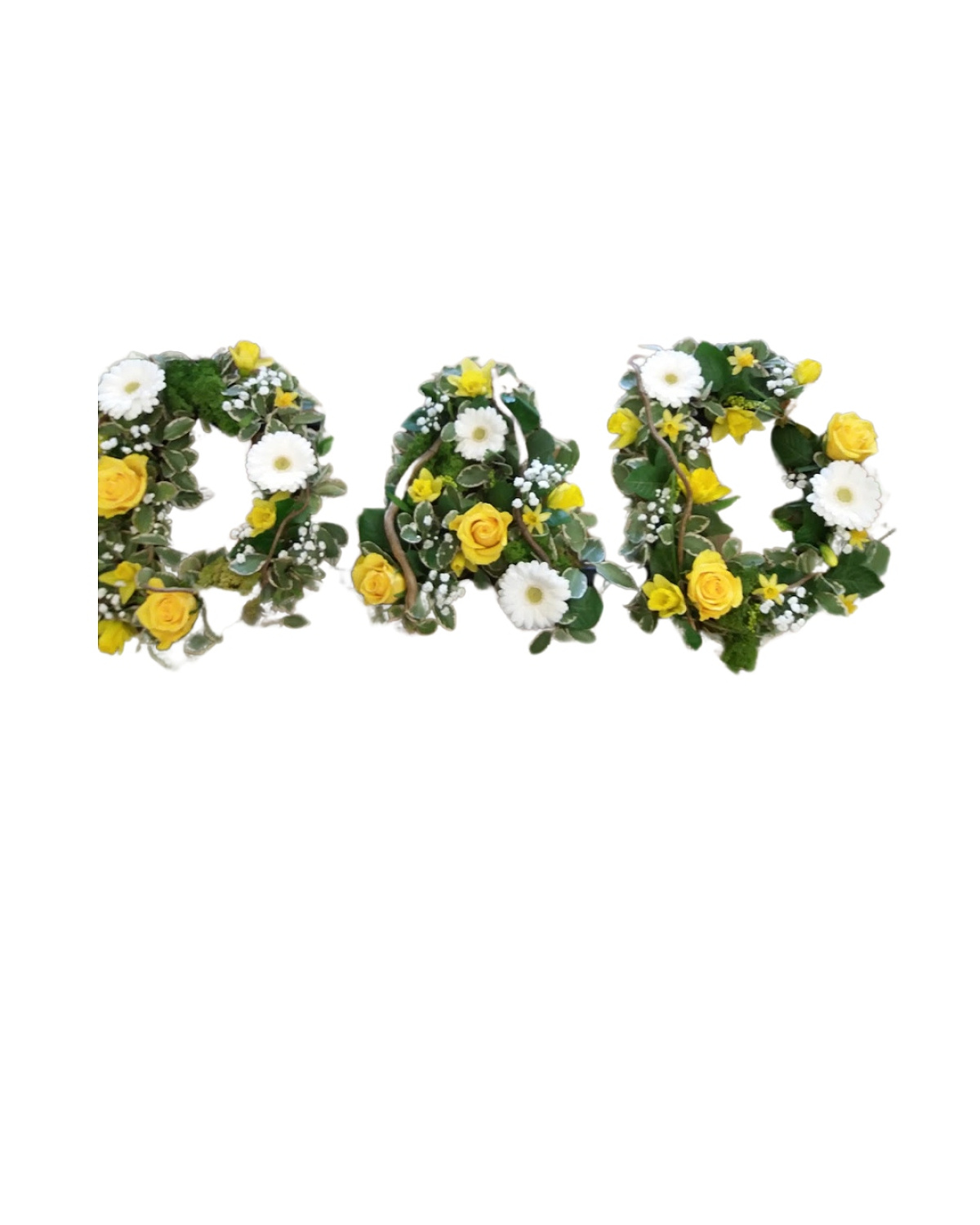 Say it with flowers with our letter tributes, you can chose to have them either based or open in a variety of colours.